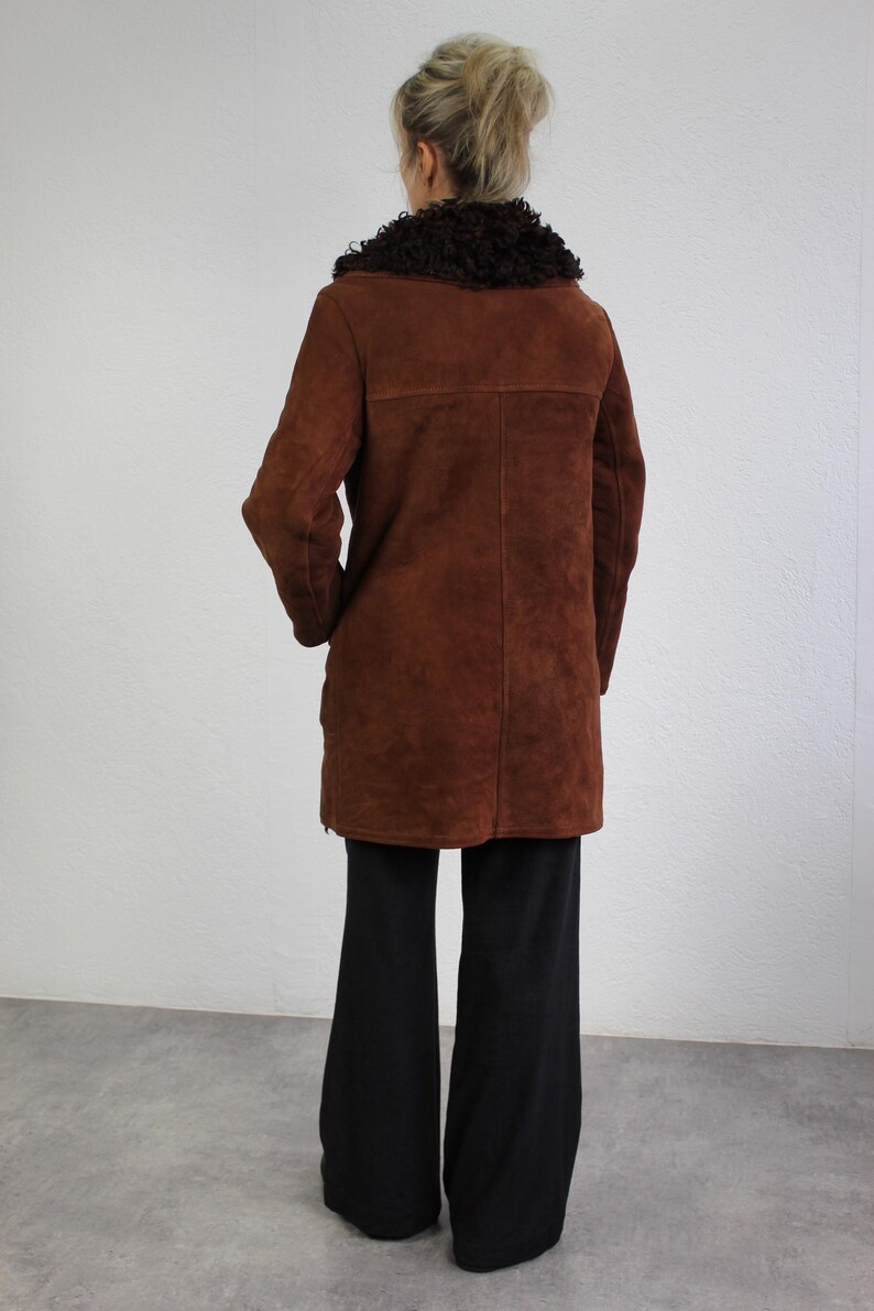 Crafted with premium materials, the Antartex Sheepskin Coat features expert stitching, secure front closures, and spacious pockets for everyday convenience. The natural sheepskin lining keeps you warm even in harsh conditions, while the tailored fit enhances your overall look. Whether paired with jeans for a casual day out or trousers for a smart evening, this coat effortlessly adds elegance to your outfit.