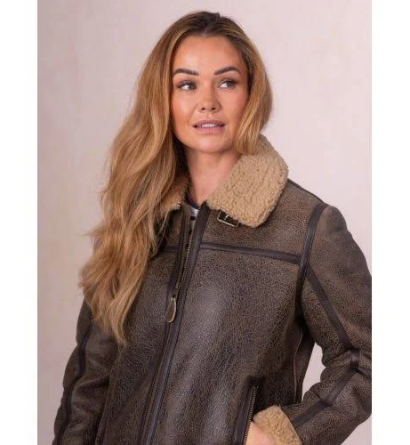 Classic Aviator Design: Wide shearling collar with a feminine tailored cut