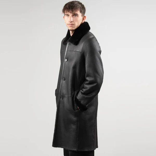 premium Black Shearling Coat Mens