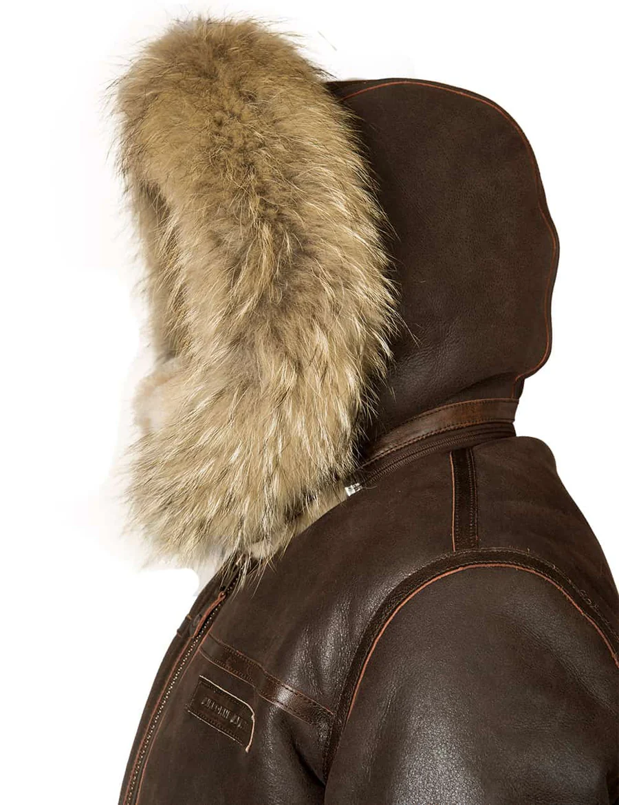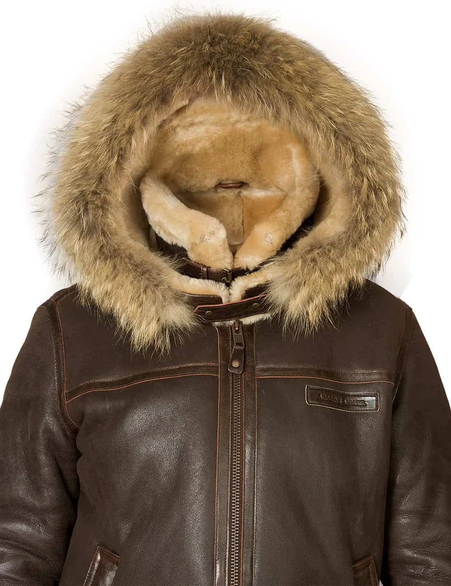 Key Features Of Bomber B-3 Sheepskin Jacket Hooded Whiskey