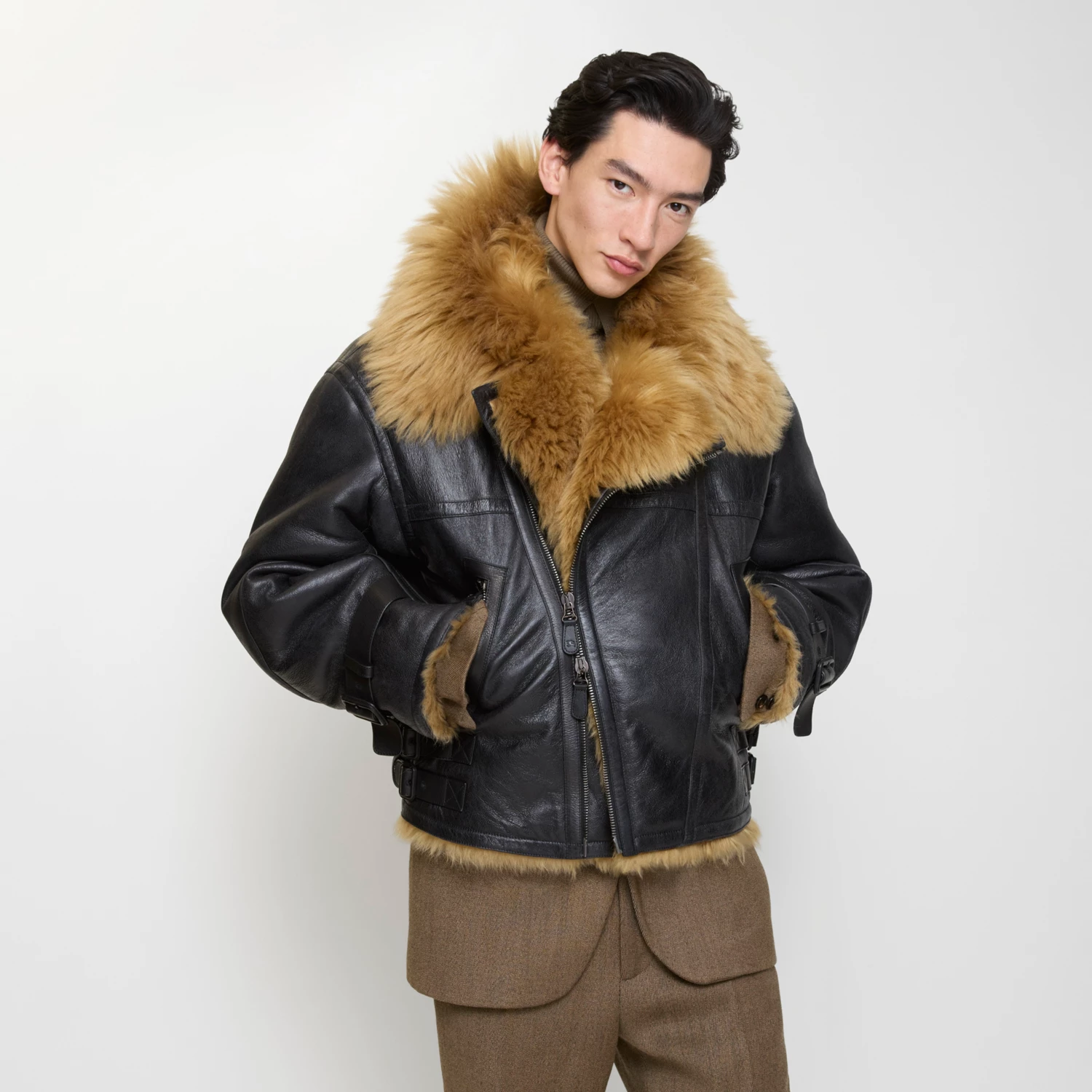 Collar: Fold-down shearling collar for warmth and classic aviator appeal