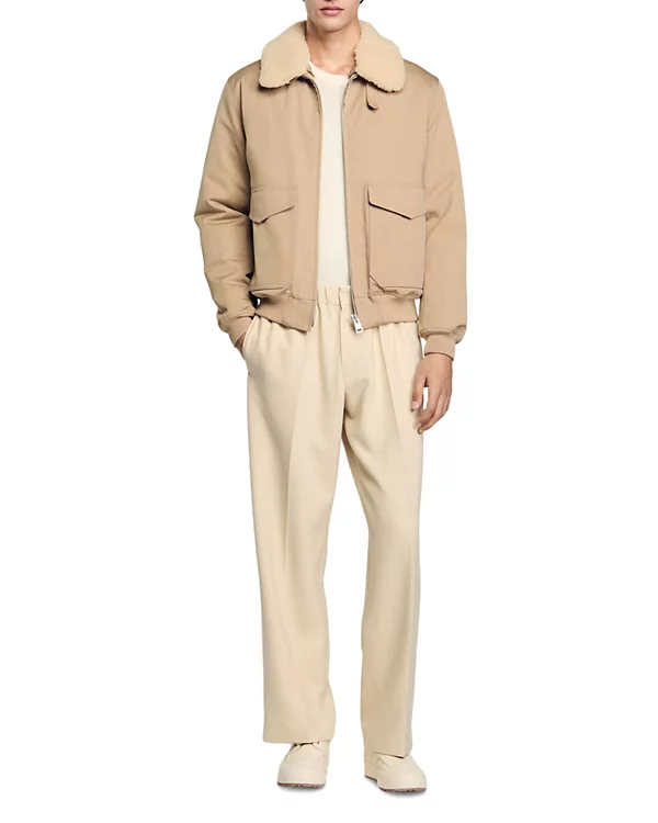 Fold-over shearling collar for wind protection and added style