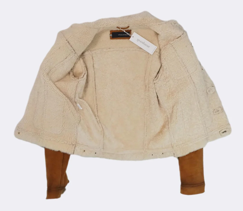 PREMIUM Dsquared2 Mens Coat Khaki With Sheepskin Collar