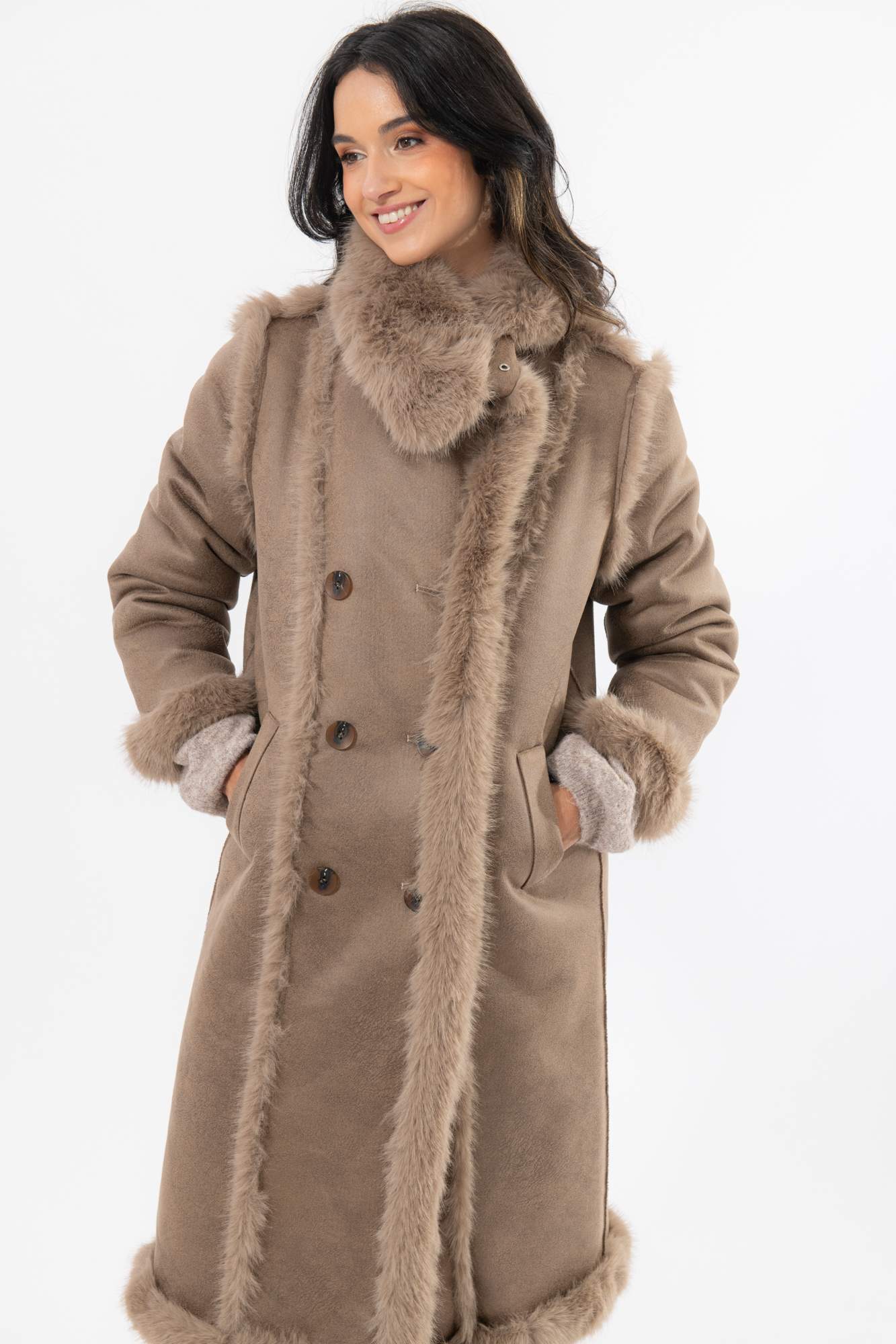 Stay warm and stylish with the faux fur shearling coat, designed to combine luxurious comfort with animal-friendly fashion. Crafted from high-quality faux materials, this coat features a soft, plush lining that keeps you cozy while offering a chic, versatile look perfect for any occasion.