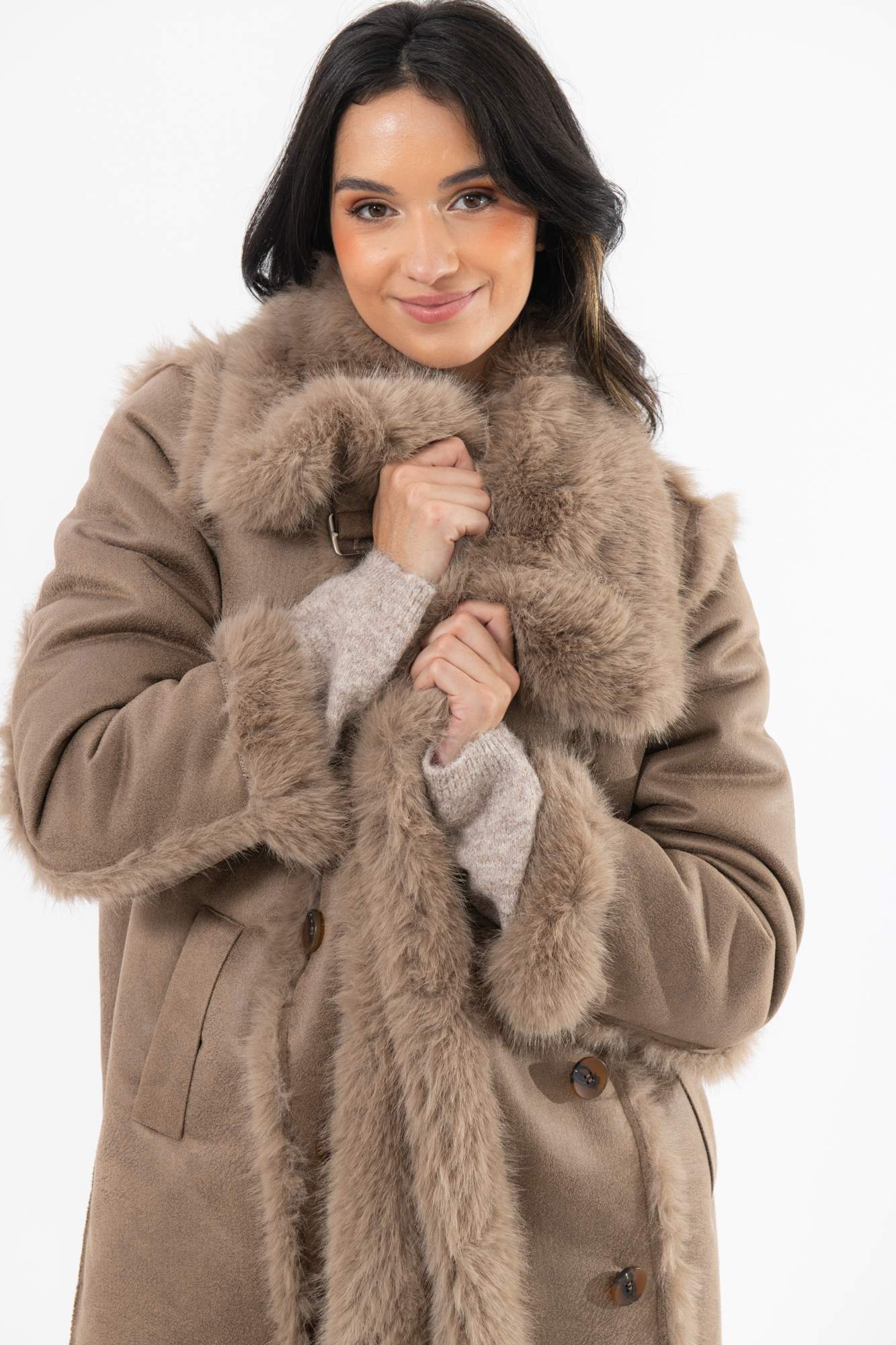 Stay cozy and stylish with the | faux fur shearling coat. Elegant, warm, and cruelty-free.
