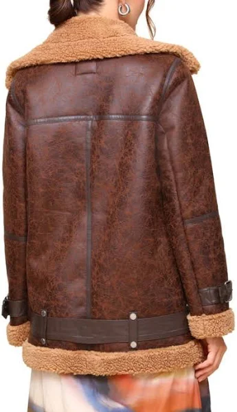 Available in versatile styles like cropped jackets, longline coats, aviators, and bombers, a faux shearling coat pairs effortlessly with jeans, trousers, skirts, or dresses. Colors such as black, tan, cream, and brown make it a timeless addition to any wardrobe, offering both comfort and sophistication.