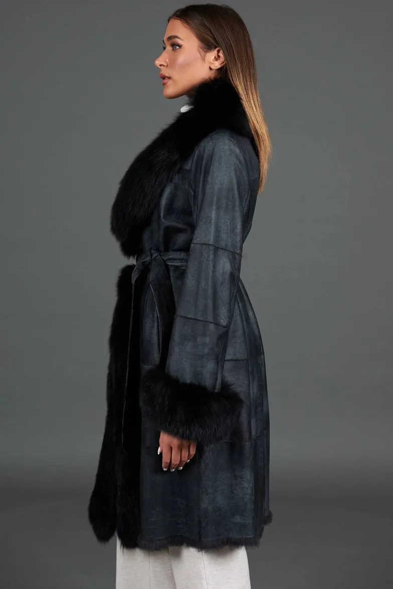 PREMIUM Fox Fur Collar Sheepskin Coat