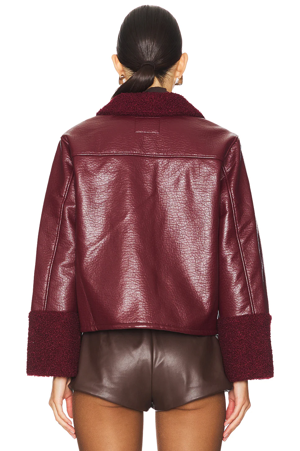 The Jacket With Faux Shearling features a classic design with a tailored fit, making it easy to layer over sweaters or tops. Its durable exterior ensures long-lasting use, while the plush lining keeps you cozy throughout the season. This versatile jacket pairs perfectly with jeans, leggings, or skirts, making it a must-have addition to any wardrobe.