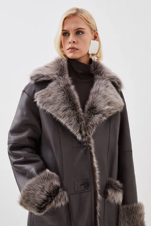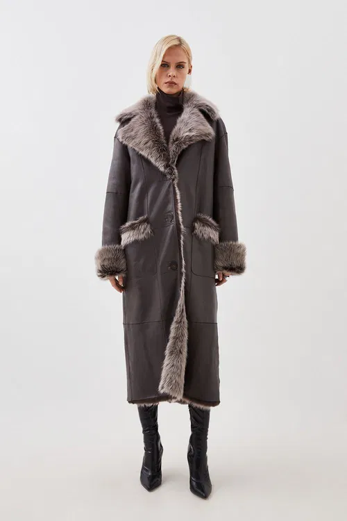 Pair a long black shearling coat with tailored trousers and boots for polished winter elegance