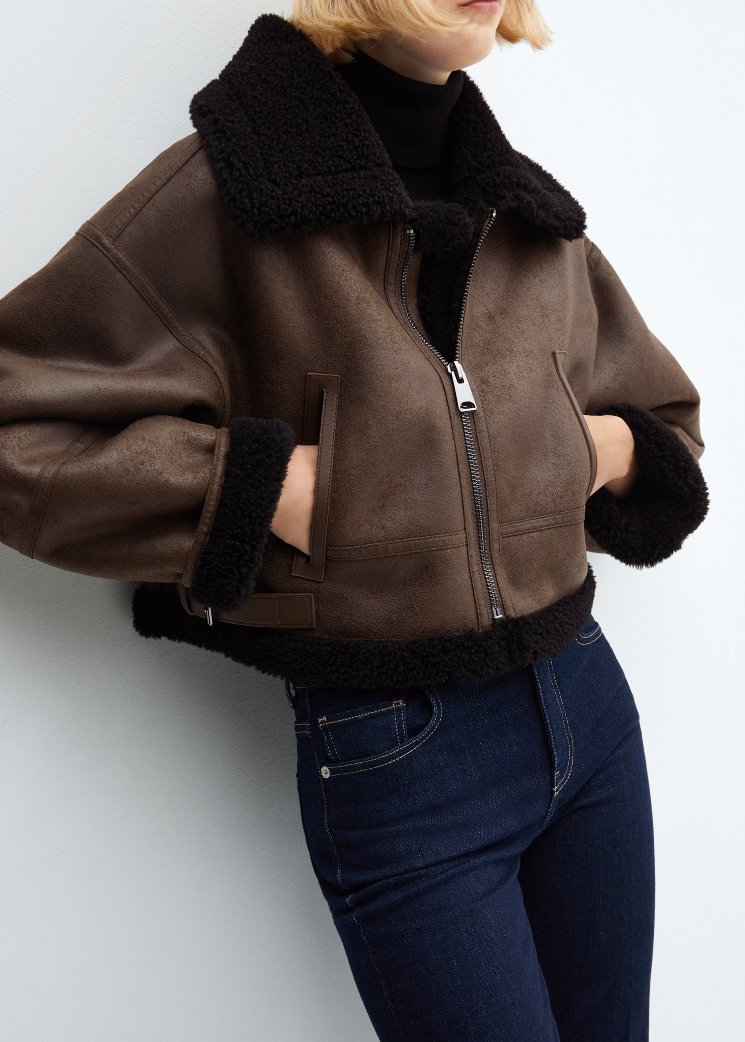 Stay stylish and warm with the Mango sheepskin jacket. A perfect mix of fashion and comfort.