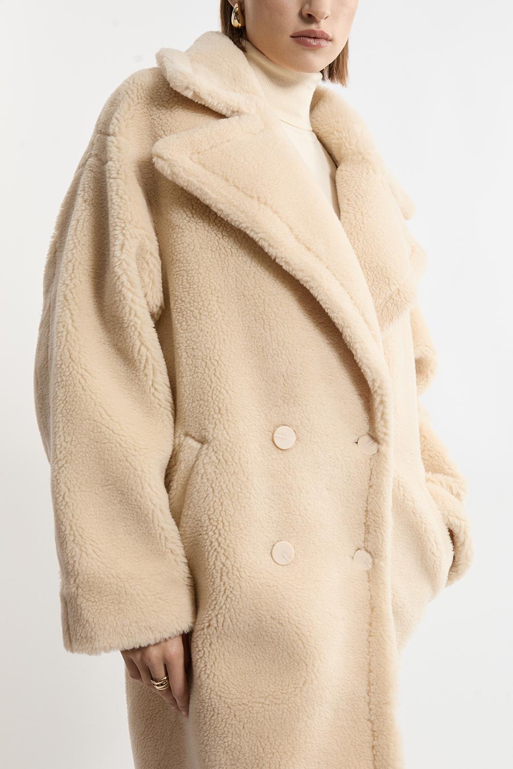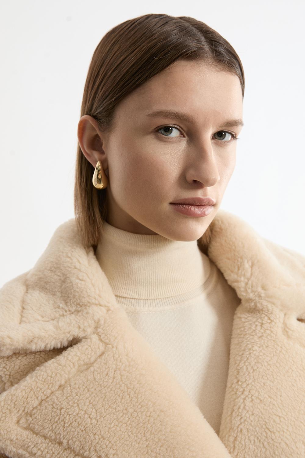 The Sheep Skin Coat combines premium sheepskin warmth with stylish design for versatile winter fashion.