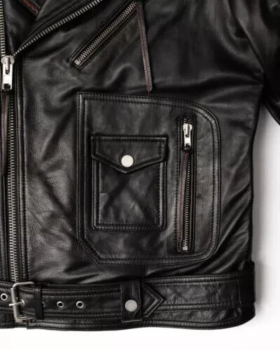 Crafted from premium sheepskin leather, the exterior offers a stylish yet durable finish that resists wind and wear, while the interior shearling lining provides natural warmth and comfort. Its classic moto design includes a front zipper closure, stand-up or snap-tab collar, zippered cuffs, and secure pockets—everything built for movement and protection. Pair it with jeans, boots, and gloves for an authentic biker look, or layer it over casual wear for a bold urban style.