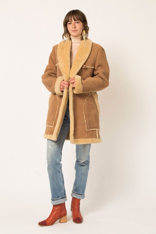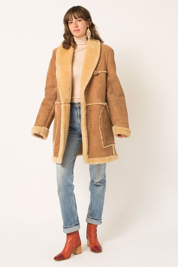 What makes these coats unique is their heritage appeal—crafted to last, they often develop a beautiful patina over time, making every piece one of a kind. From cozy countryside walks to stylish city outings, a vintage sheepskin coat instantly transforms any outfit. Whether layered over jeans and boots for a rugged look or styled with dresses for a sophisticated edge, this coat blends tradition with versatility.
