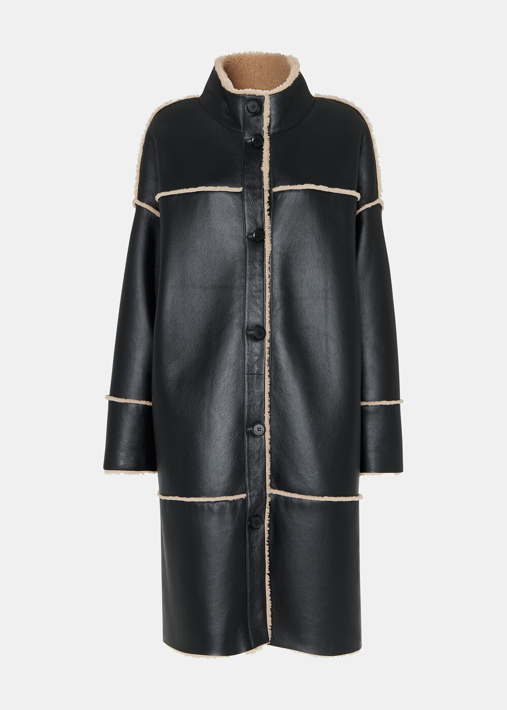 For evenings out or special events, drape the coat over a long knit dress or velvet ensemble and finish with statement earrings and heeled boots. The luxurious look of the shearling lining peeking from the collar or cuffs adds texture and dimension, making even the simplest outfit feel runway-ready.