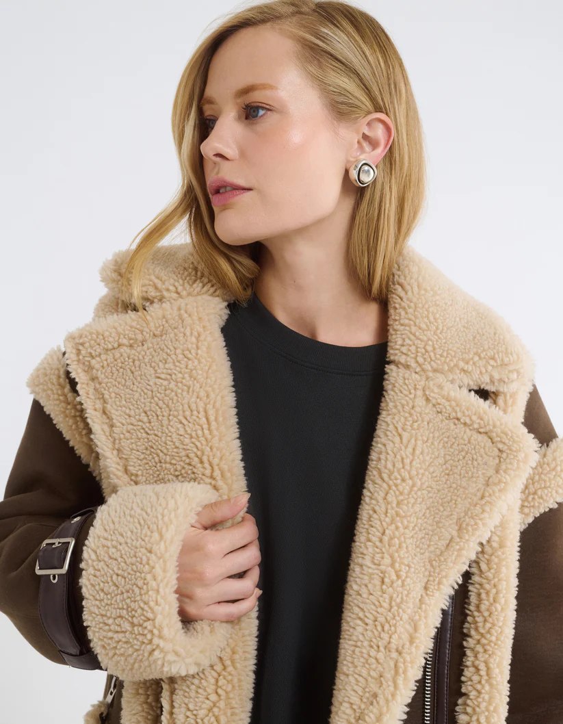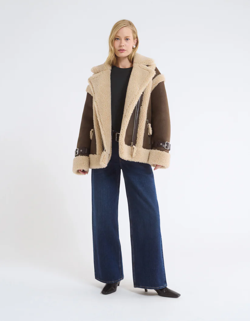 Structured collar (often with shearling trim) for added warmth and vintage feel